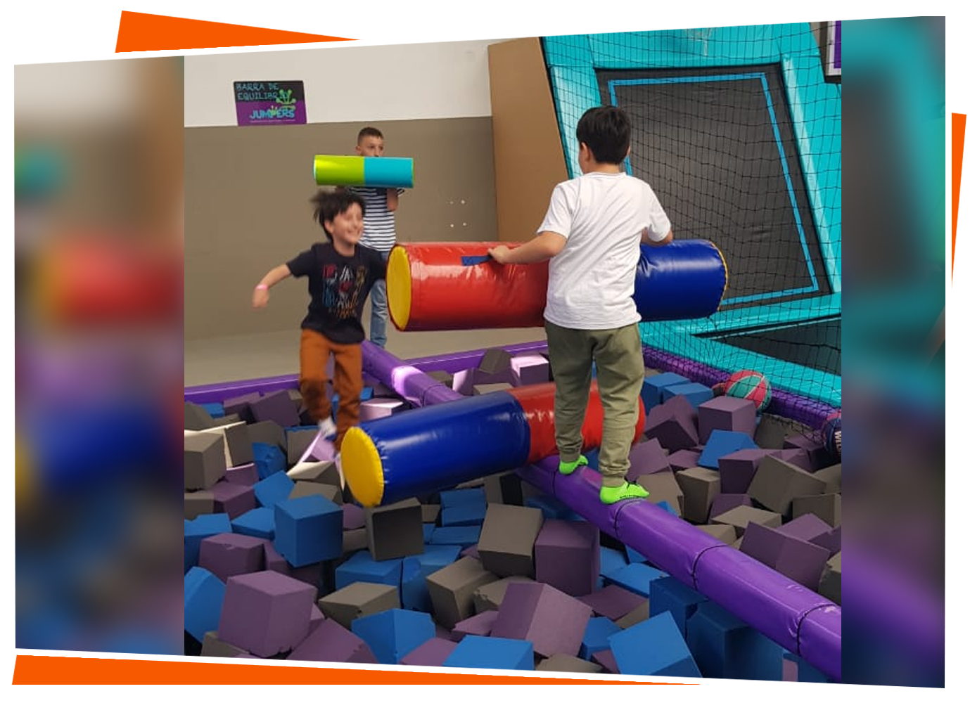Lucha de gladiadores sobre barra fija, con sticks y el que pierde el equilibrio cae en la piscina de bloques de espuma (Foam Pit), divertido, pueden retarse entre amigos o competiciones de equilibro muy divertidas.